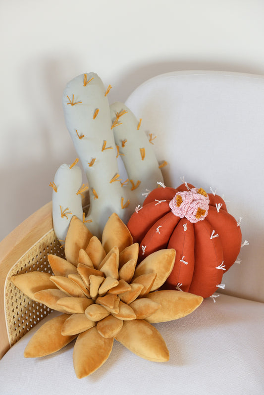 Gold, Ochre and Light Beige Cactus Pillow Set