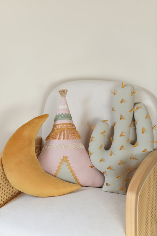 Dreamy Llama, Moon and Cactus Boho Decor Pillow Set