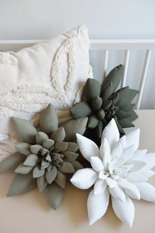 Succulent Pillow in Light Sage, Khaki or Dark Olive