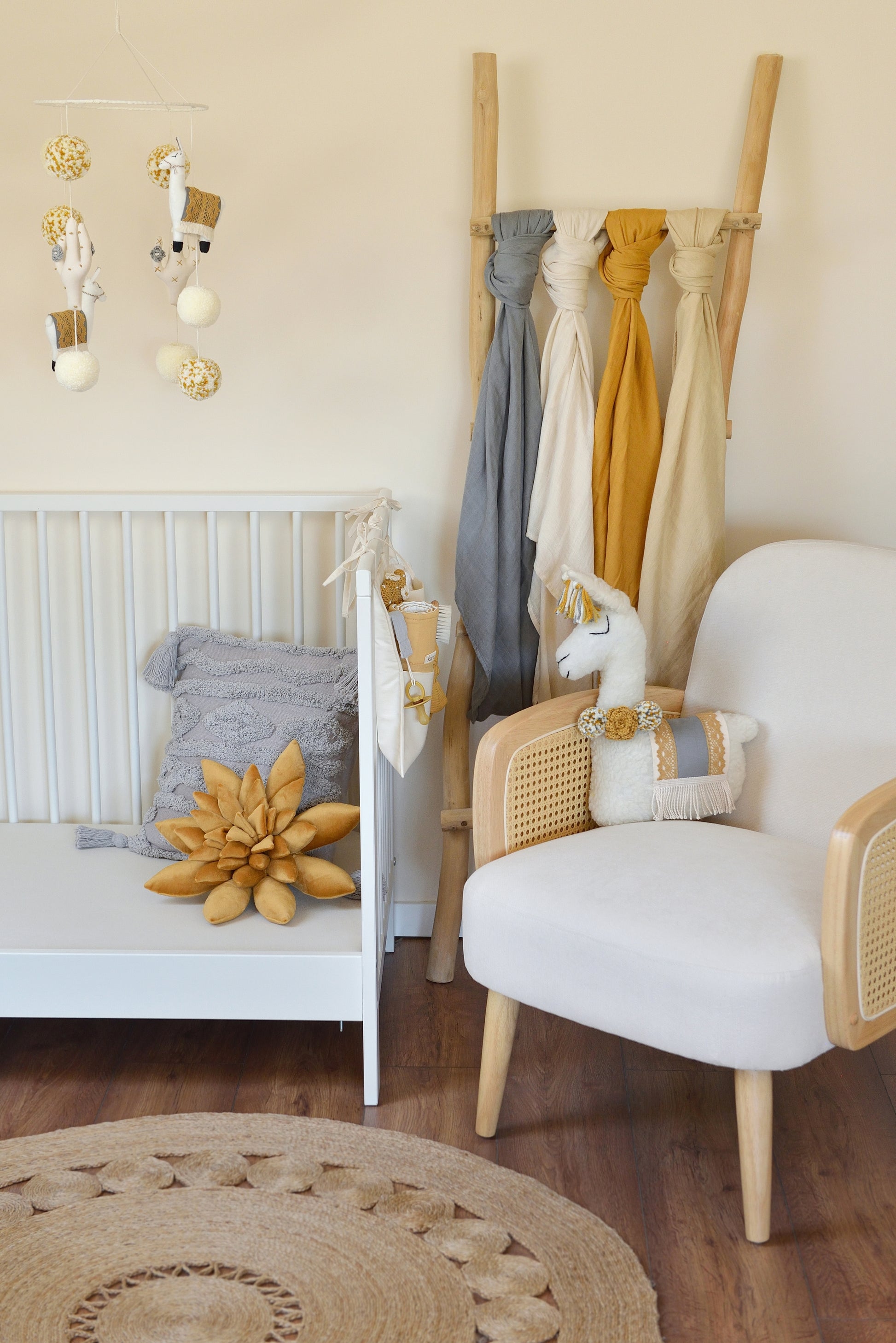 Bring calm and character into your nursery or playroom with our Llama Boho Decor Pillow, a handmade accent designed in a soothing neutral palette of grey, ivory, and mustard tones. Thoughtfully crafted with heirloom-quality care, this llama pillow blends whimsical charm with timeless design, making it a perfect fit for gender-neutral nurseries and modern boho interiors.