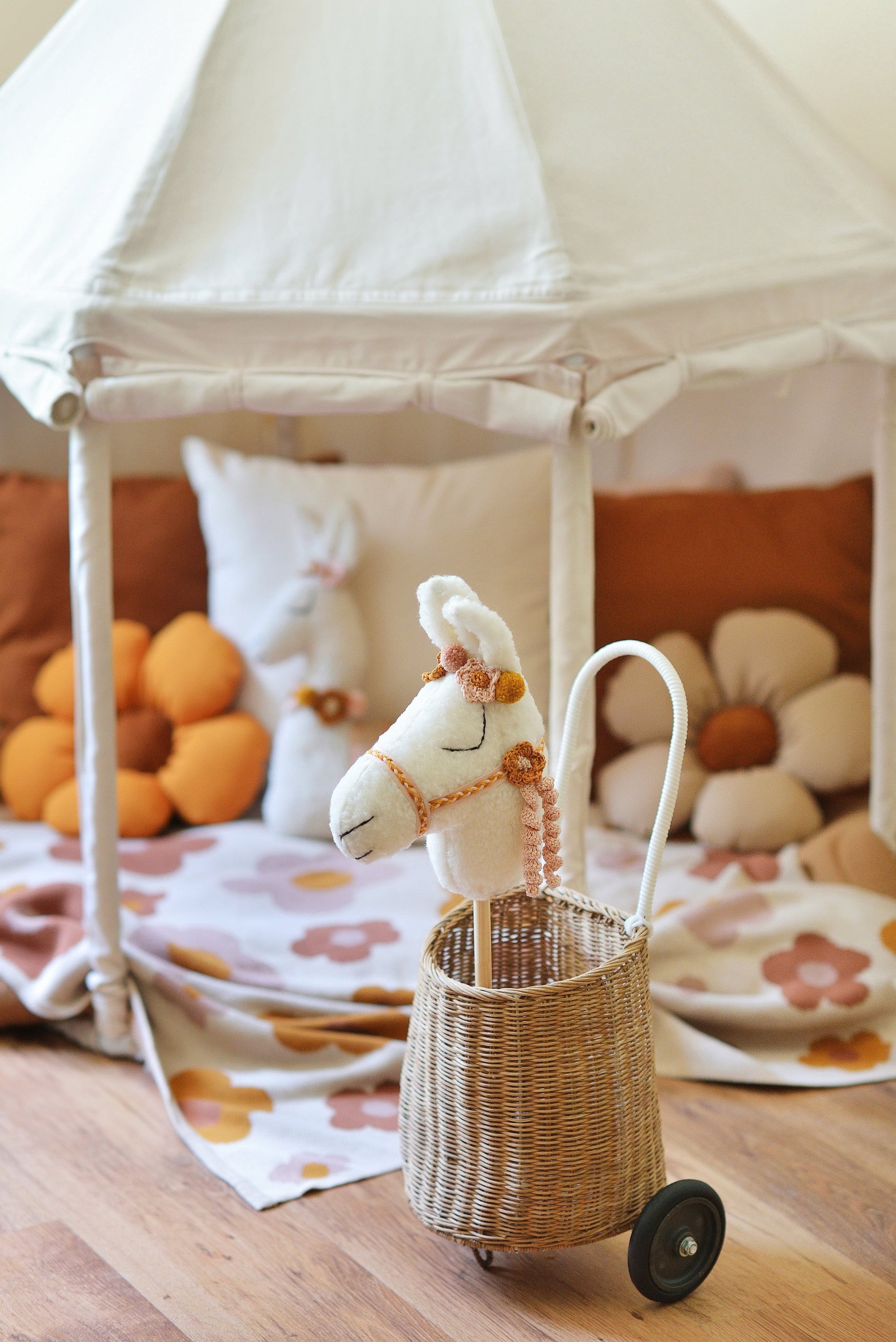 Transform your floral-themed nursery into a cheerful haven with our handcrafted Daisy Decor Pillow, featuring vibrant marigold and cinnamon brown tones. Daisies, with their timeless charm, symbolize innocence, purity, and simplicity, making them a perfect addition to your baby’s space. Their whimsical design and cheerful presence evoke feelings of joy and optimism, while adding a touch of sweetness and nostalgia to your decor.