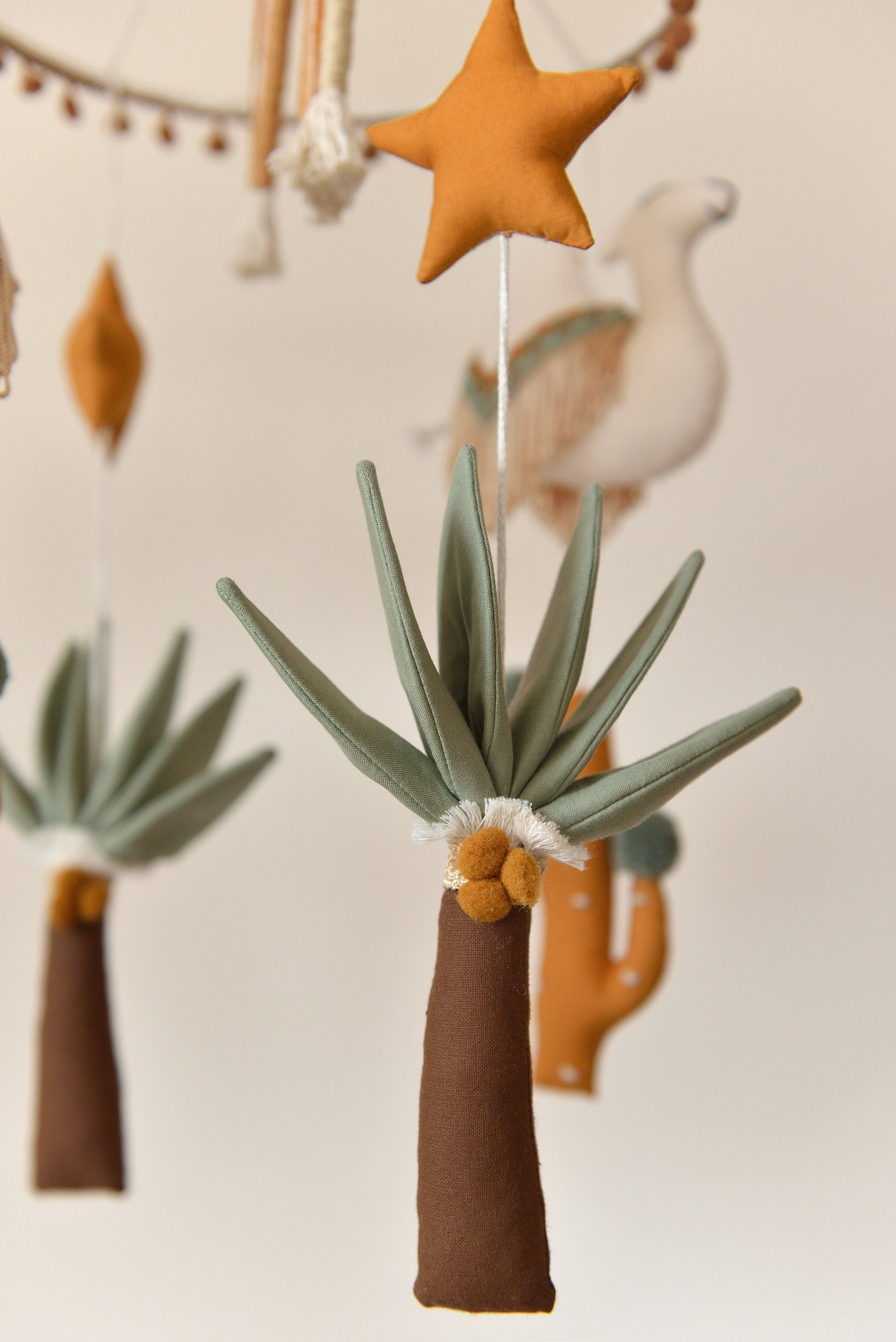 Infuse your nursery with sun-kissed desert hues and the magic of distant lands with our handmade Desert Rainbow Nursery Mobile in Ochre. Designed to capture the beauty of the sunlit dunes, this mobile is a stunning blend of warm ochre, sage greens, and creamy neutrals, bringing a natural, earthy elegance to your baby’s space.