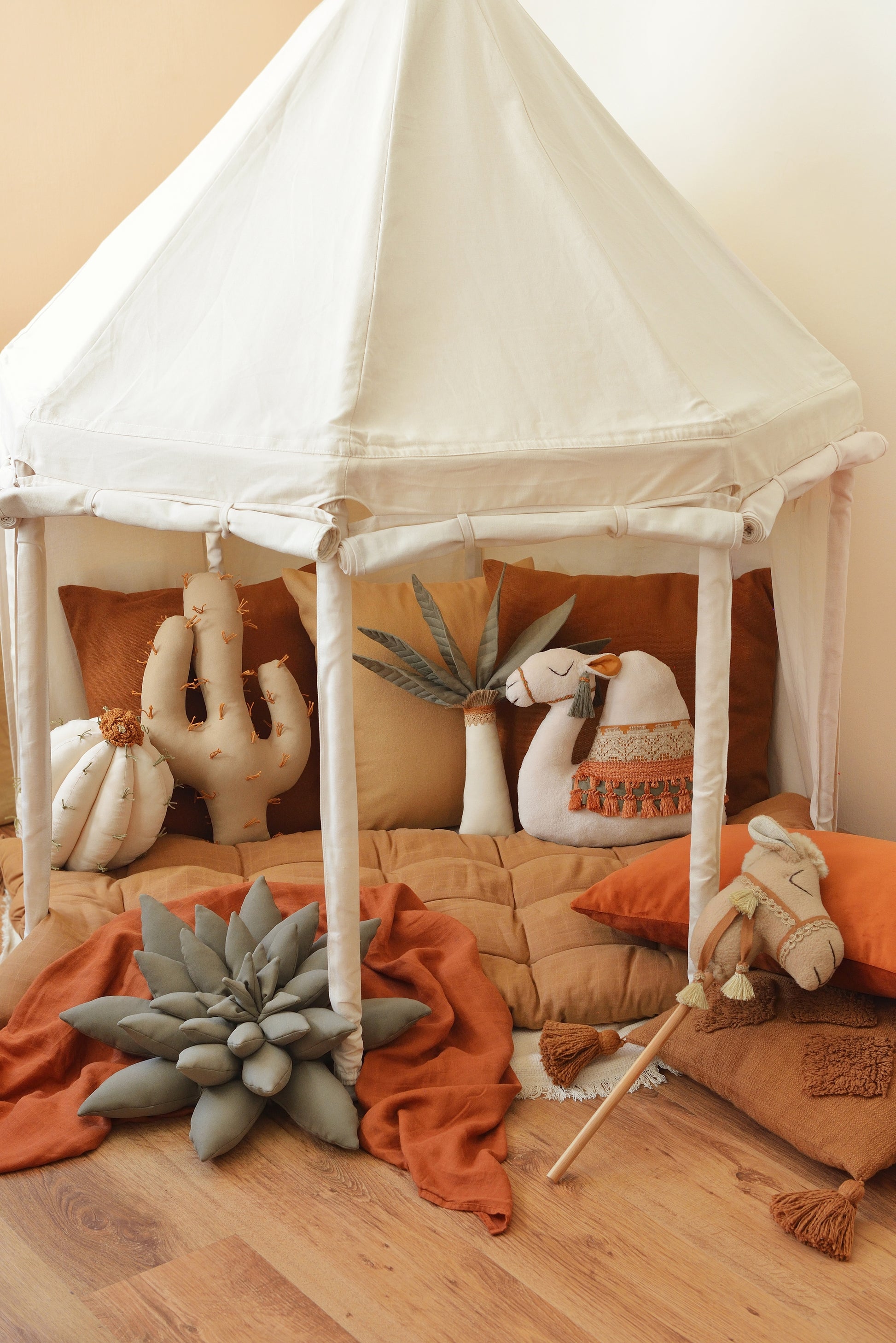 Place the Barrel Cactus Pillow in a reading corner or on a nursery chair to bring a soothing desert vibe to your baby’s sanctuary. Its soft texture and whimsical design will spark joy for both you and your little one.