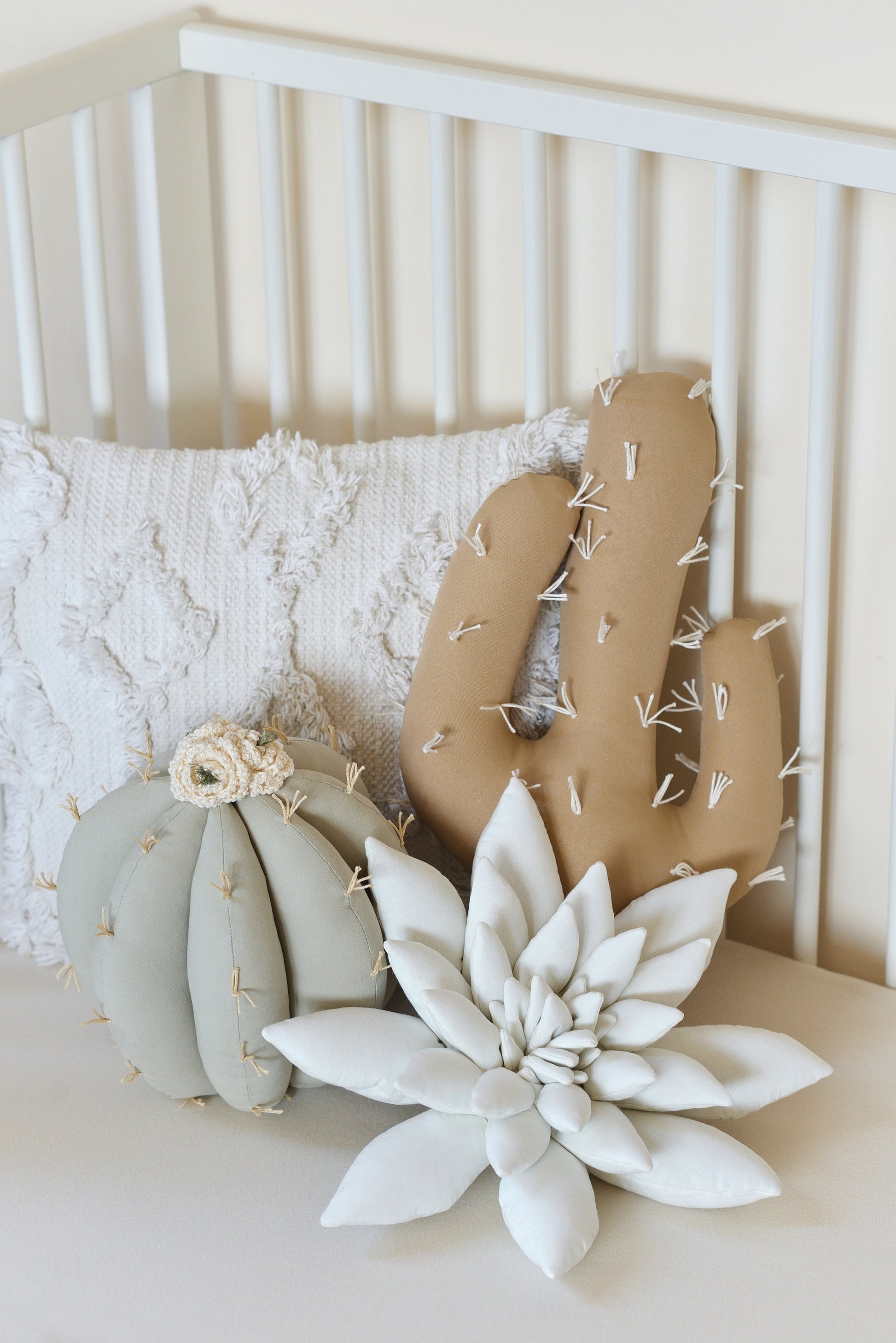 Shop the Light Sage, Tan & Offwhite Cactus Pillow Set today and let your nursery or home bloom with desert magic!