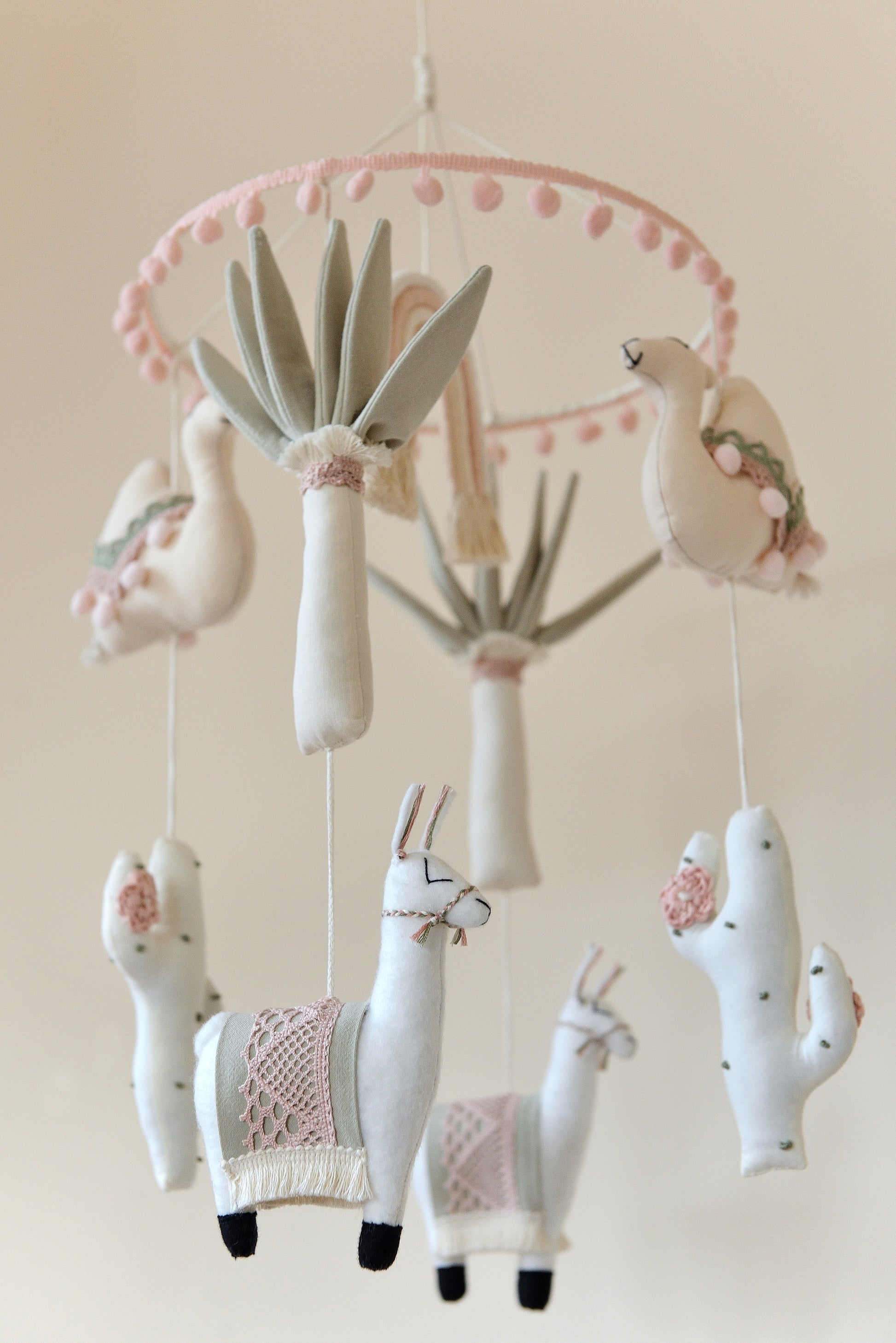 Inspire a lifelong love for exploration and adventure with our Wanderlust Boho Nursery Mobile in Sage and Blush. Whether you're dreaming of distant deserts and lush oases, this mobile brings the beauty of the world into your little one’s space. Featuring motifs like cacti, llamas, camels, and palm trees, the mobile draws inspiration from diverse cultures and landscapes around the globe. These elements evoke the magic of far-off places, inspiring curiosity and an adventurous spirit. Together, they create a harmonious boho aesthetic that transforms your nursery into an enchanting space brimming with wonder and imagination.