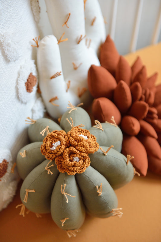 Rust, Khaki and Offwhite Cactus Pillow Set